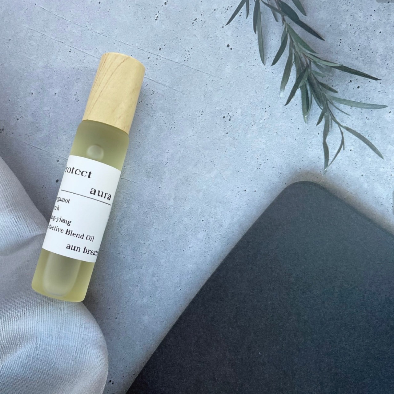 そんな折に出逢ったのが、この 「aun breath protect aura」 というアロマでした。ベルガモットの爽やかさと、ミルラの神聖さ、そしてイランイランやローズの華やかさが重なり合い、まるで光のヴェールに包まれるような感覚を持つことができる商品だと感じました。実際にmasamiさんに1本お譲り頂き,初めて使用した時には、ふわりと広がる香りと共に心身がすっと軽くなり